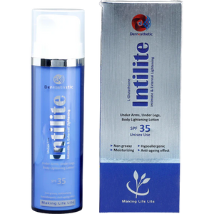 Intilite Intimate & External Lightening Lotion SPF 35 is a high-performance body milk formulated to brighten and even out skin tone in delicate zones like under-arms, inner thighs, elbows, knees and intimate external areas. Infused with potent actives including Alpha Arbutin, Niacinamide, Licorice Root Extract and L-Glutathione, and paired with broad-spectrum UVA/UVB protection (SPF 35), it lightens pigmentation, supports skin hydration and shields against sun-induced darkening. Its non-greasy, hypoallergenic texture makes it suitable for both men and women looking to reclaim confidence in exposed or sensitive body zones.