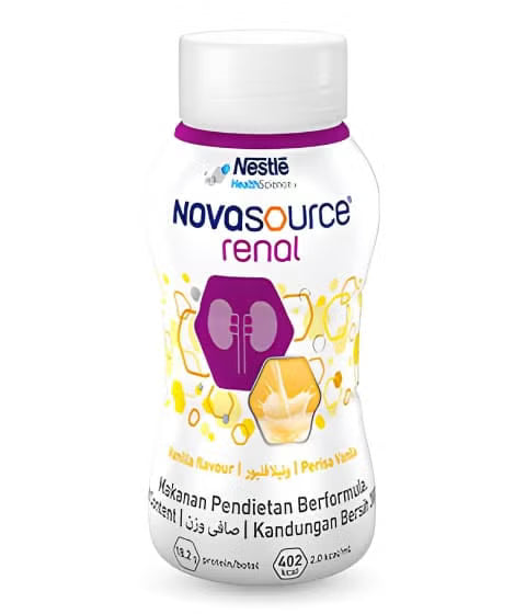 Novasource Renal 237ml is a ready-to-use nutritional drink specially formulated for people with kidney-related dietary needs who require controlled nutrition intake. It is commonly used in Pakistan by patients with kidney conditions who need managed protein, minerals, and energy as part of their daily diet under medical advice. This formula provides balanced nutrition in a small volume and is suitable for oral use as advised by healthcare professionals. It is often recommended in hospitals or home care settings where renal nutrition support is required. Oxygen Pharmacy ensures this product is original and supplied through a trusted pharmacy network.
